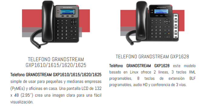 Teléfonos Grandstream son equipos basados en el protocolo estándar SIP ofrecen además una amplia interoperabilidad con las principales plataformas de telefonía de la industria. Grandstream Networks ha fabricado productos galardonados de telefonía IP, de voz y vídeo, videoconferencia.